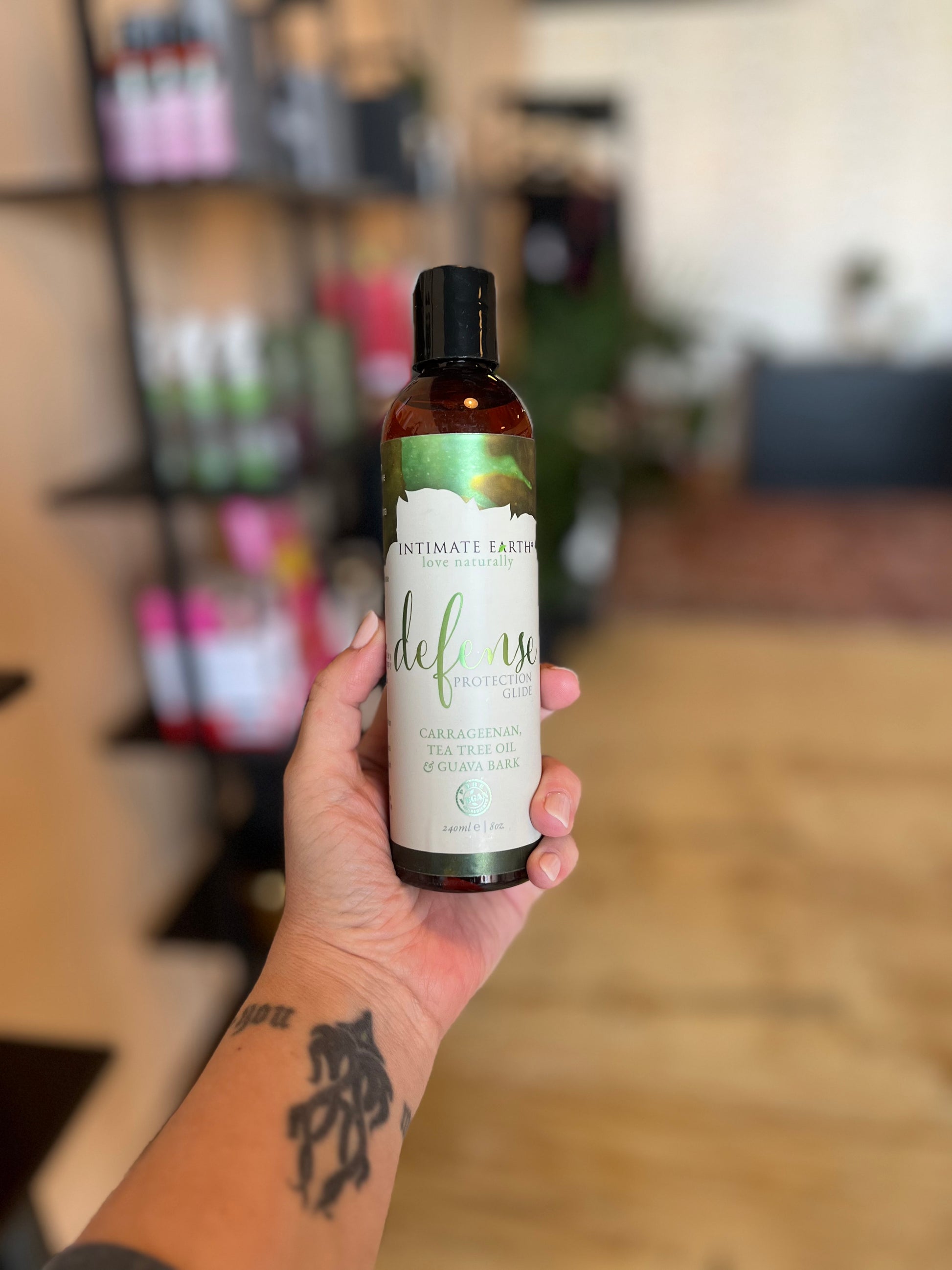 Protection Glide containing protective Carrageenan (Sea Kelp) and astringents Tea Tree Oil and Guava Bark extract. Doesn’t disrupt healthy micro flora and blends naturally with women’s own fluids. Helps prevent yeast infections and vaginal odour and heals micro tears. Vegan and Paraben free.