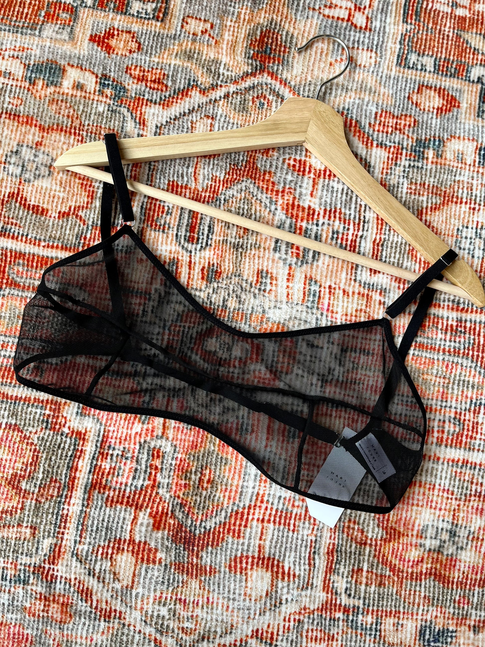 The Kendi Bra features single layer mesh with thoughtful design lines to create a simplistic, sexy look. The mesh offers a supportive fit and will give to your natural shape. Offering adjustable shoulder straps and 3/8" bra band allows it to extend from a 32 - 38 band size, select size based on cup size. Pair with the Kendi Brief for a full mesh look.