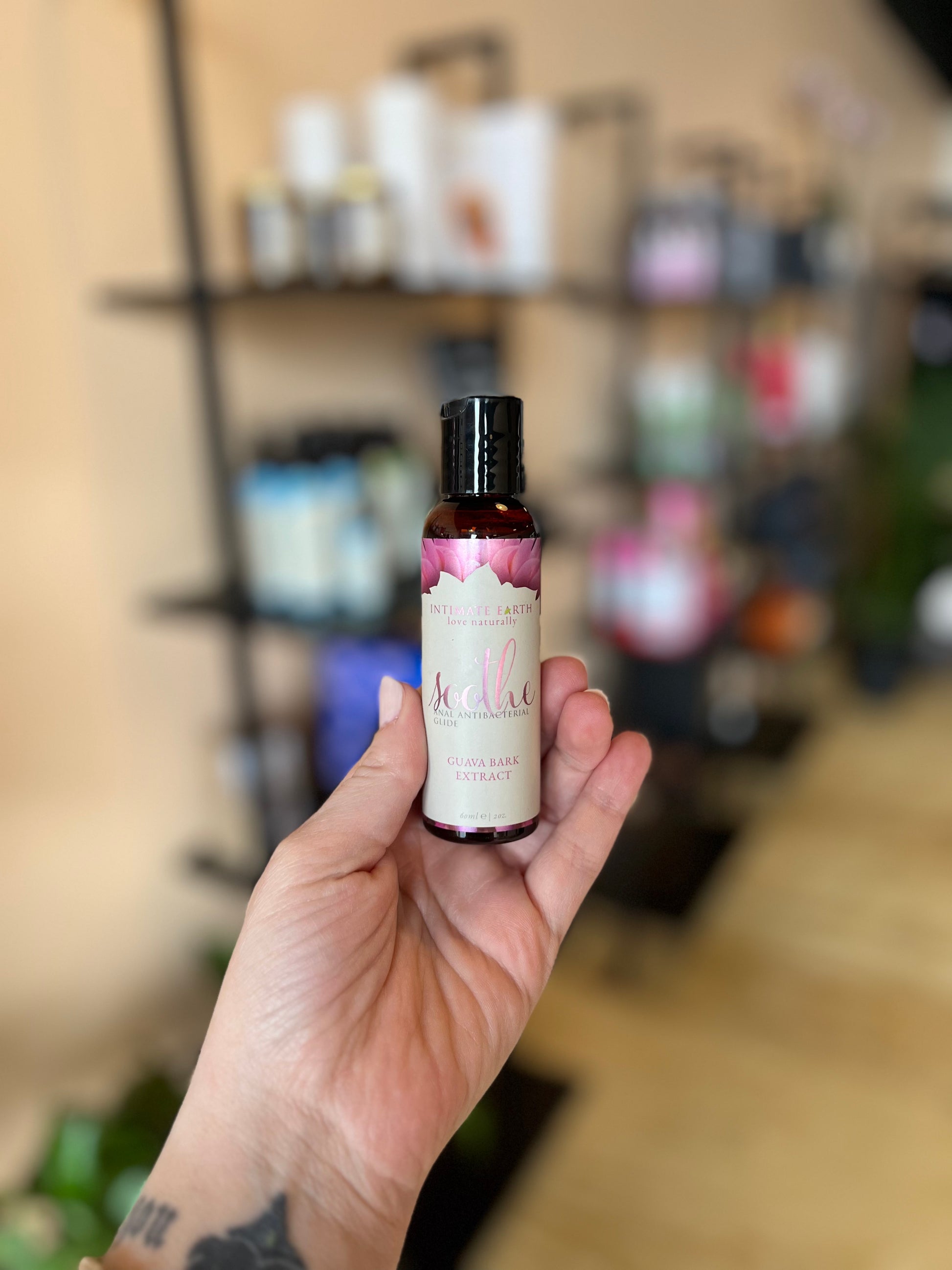 Have great safe and clean anal sex. This super thick natural astringent anal glide contains natural Guava Bark. To this day Guava Bark is still used in the Amazon for wounds. A water based glide that “cushions” during anal sex and stays “put”. Great with any silicone toy.