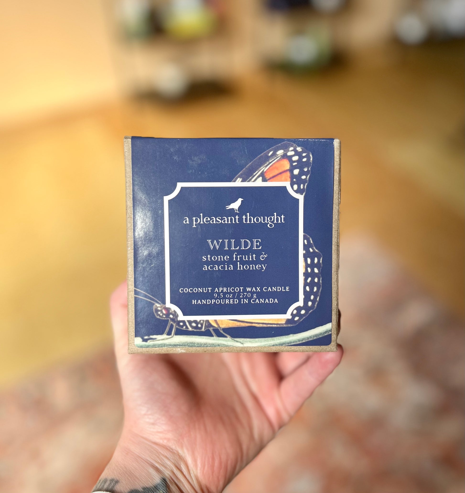 Refreshing and sweet with a soft floral finish. Experience the subtle elegance of Wilde, our stone fruit and acacia honey- scented candle